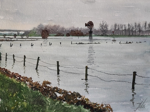 Aquarel Zutphen Ijssel Hoogwater Picturagelria Pleinair