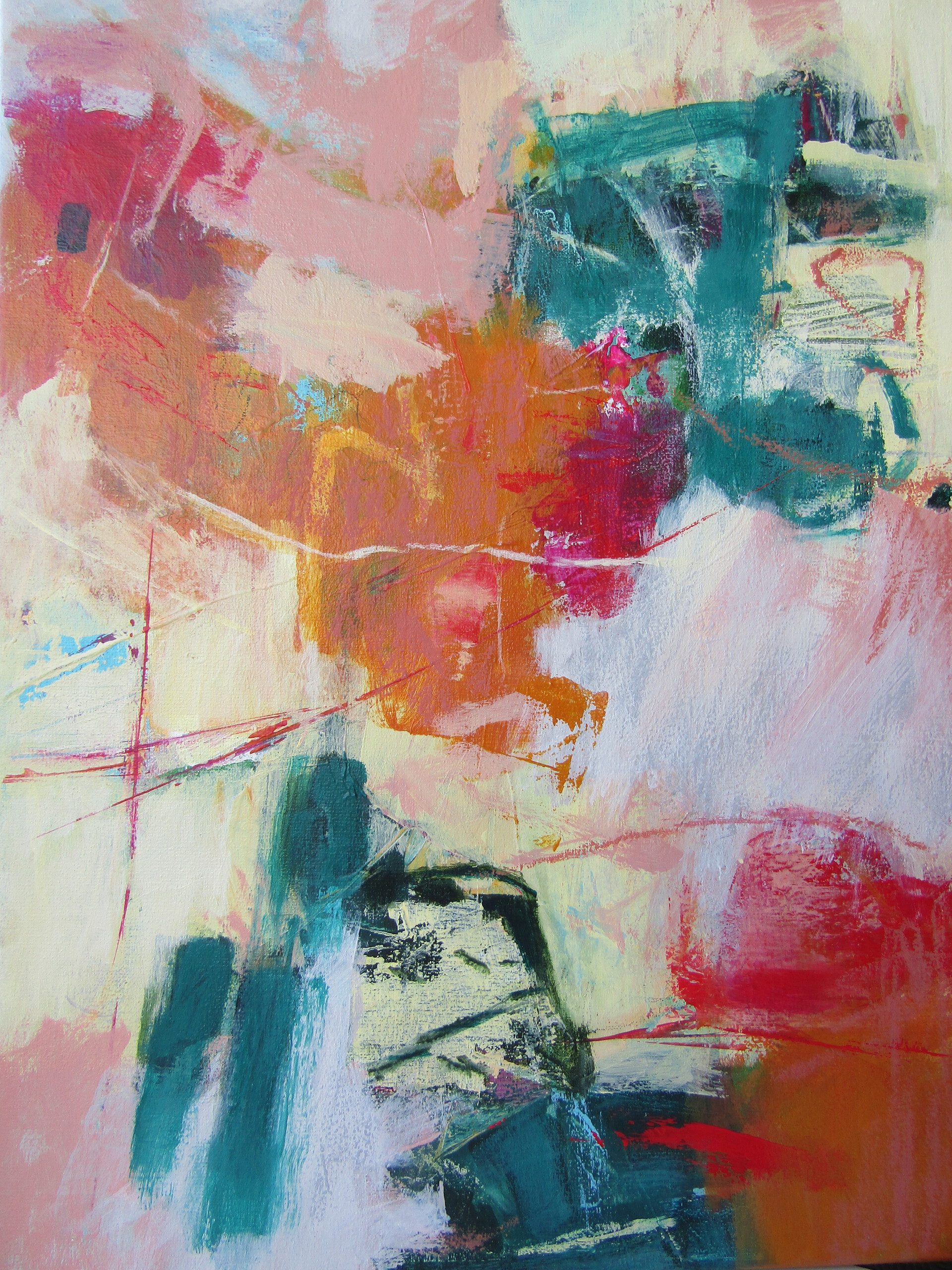 Kleurrijk Oranjebruin Rood Roze Groen Geel Dynamisch Abstract Poëtisch Lyrisch Abstractie Interieurkunst
