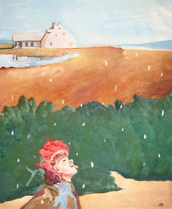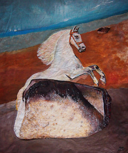 Spring of peace behind the stone, Acrylic on paper