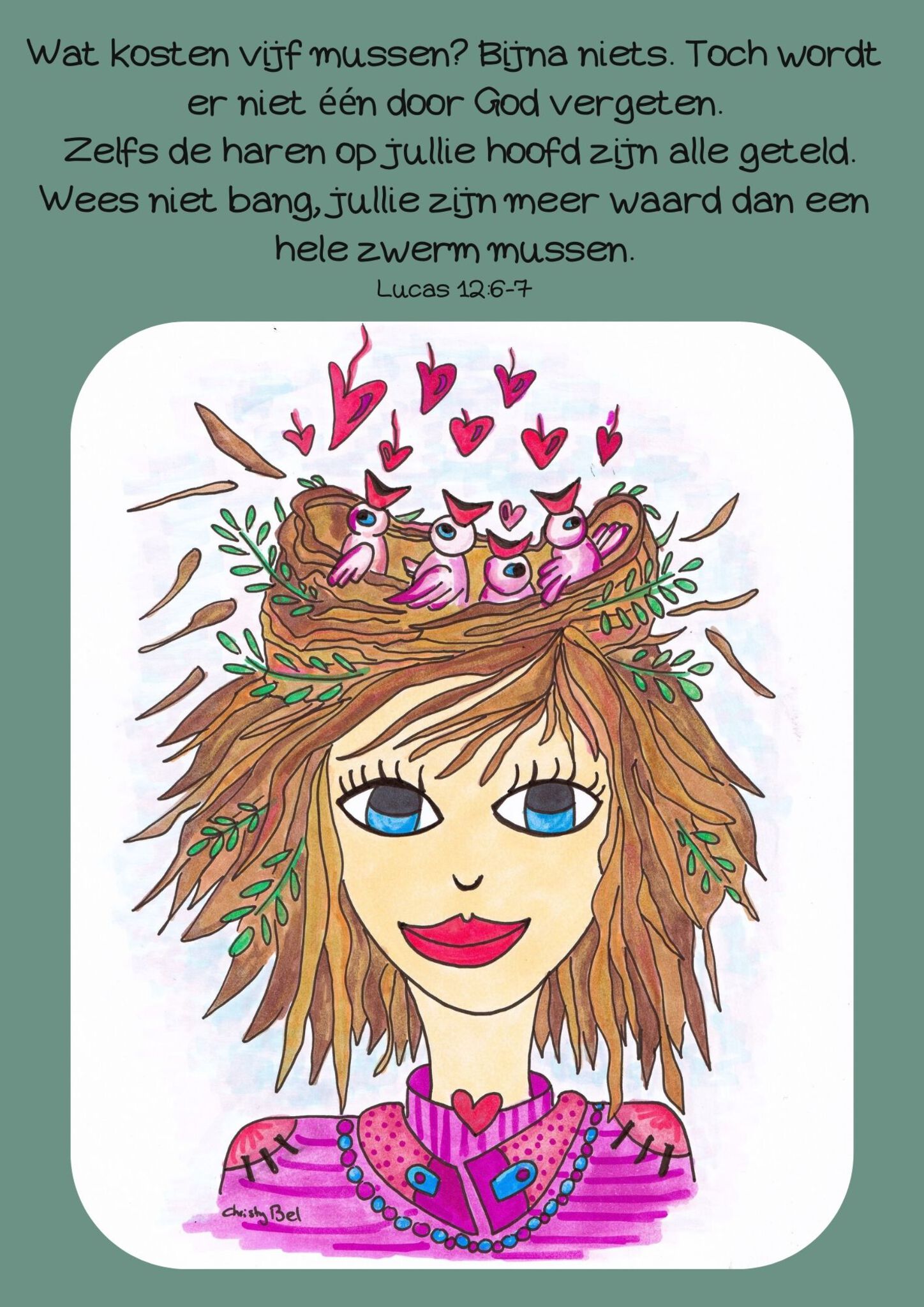 Hallo ik ben christy Bel Graag maak ik illustraties en kleurplaten met een Bijbeltekst. Mijn werk mag gebruikt worden om blij van te worden. ( niet commercieel ) christybel.illustraties@gmail.com