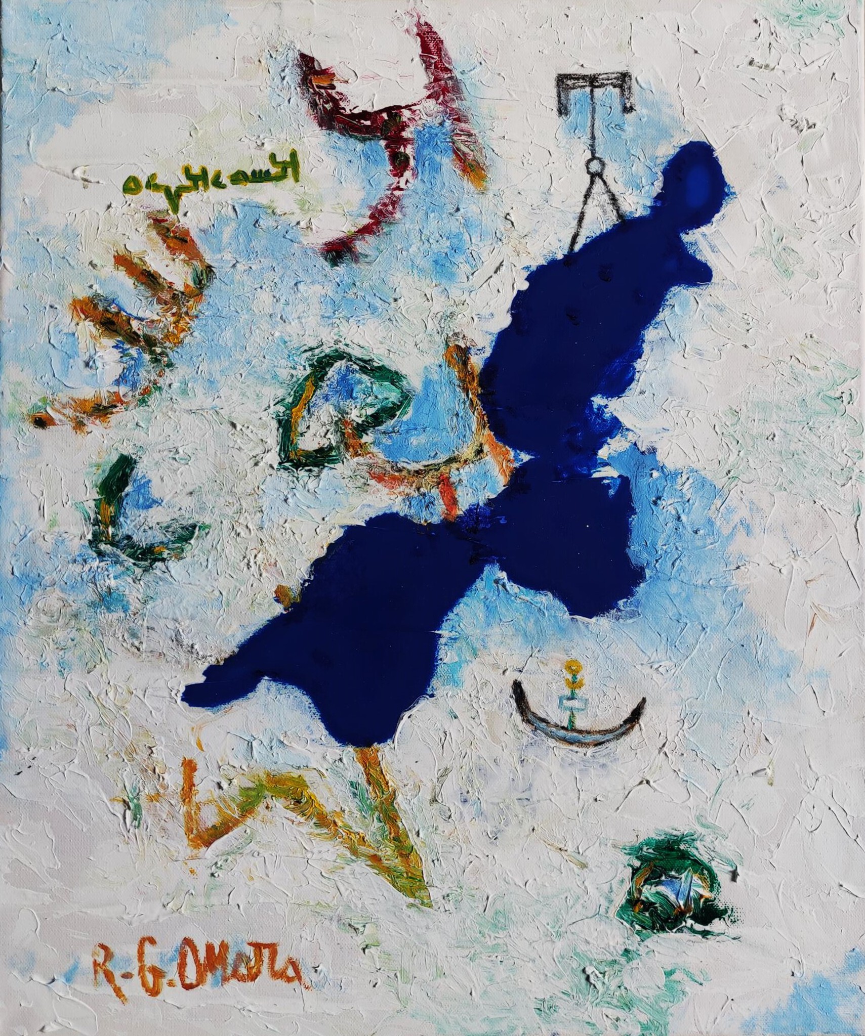 The ascent of the Mandaean soul to heaven from the holy book of Angel Awathur (Mandaeans Holy Book) the Spiritual boat to pick up the soul to the heaven the spiritual sea of (Sof) in every painting, Mandaean letters for a word, one of the Good Manners of the Mandaean believers
