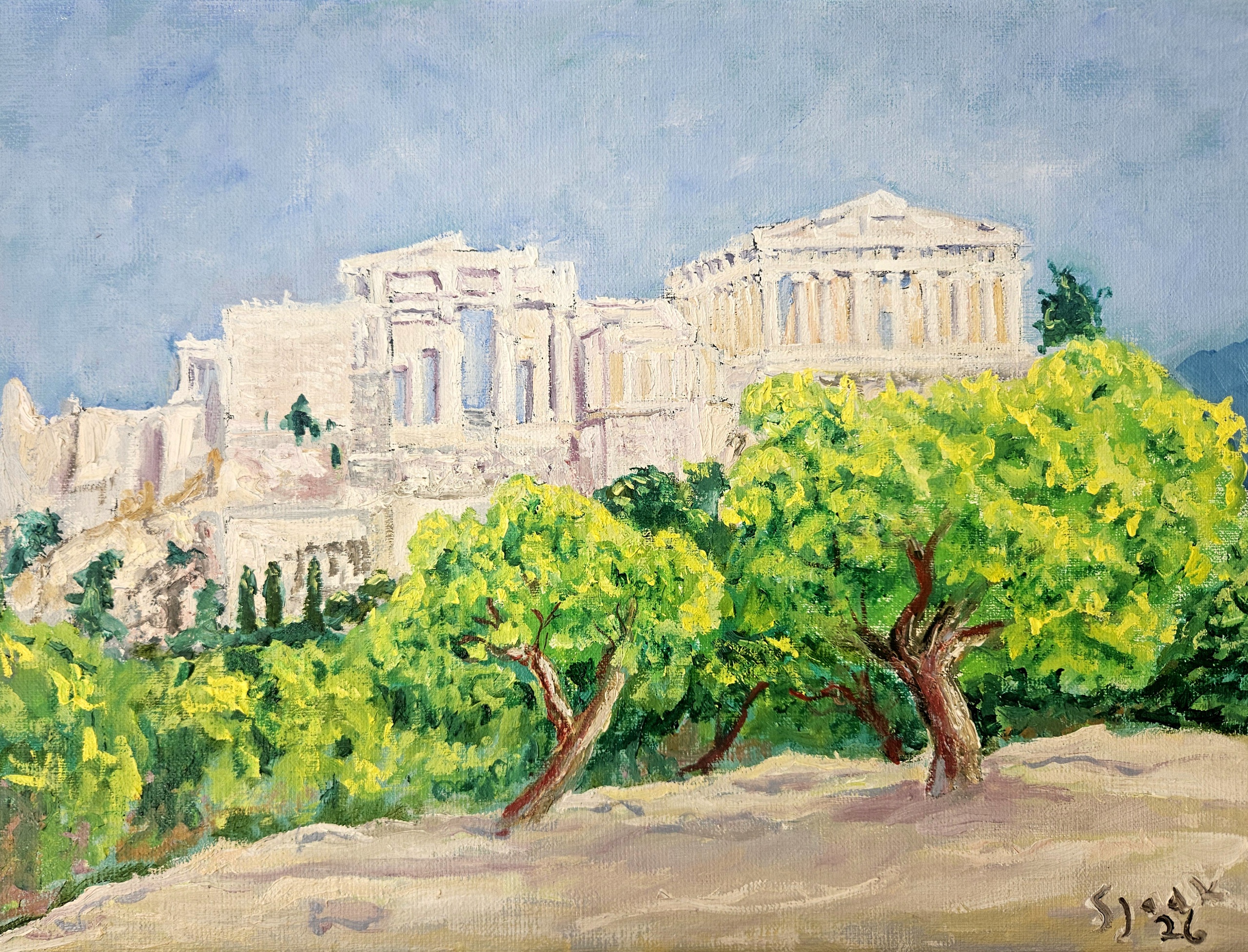 Zicht op de Akropolis vanaf de Pnyx