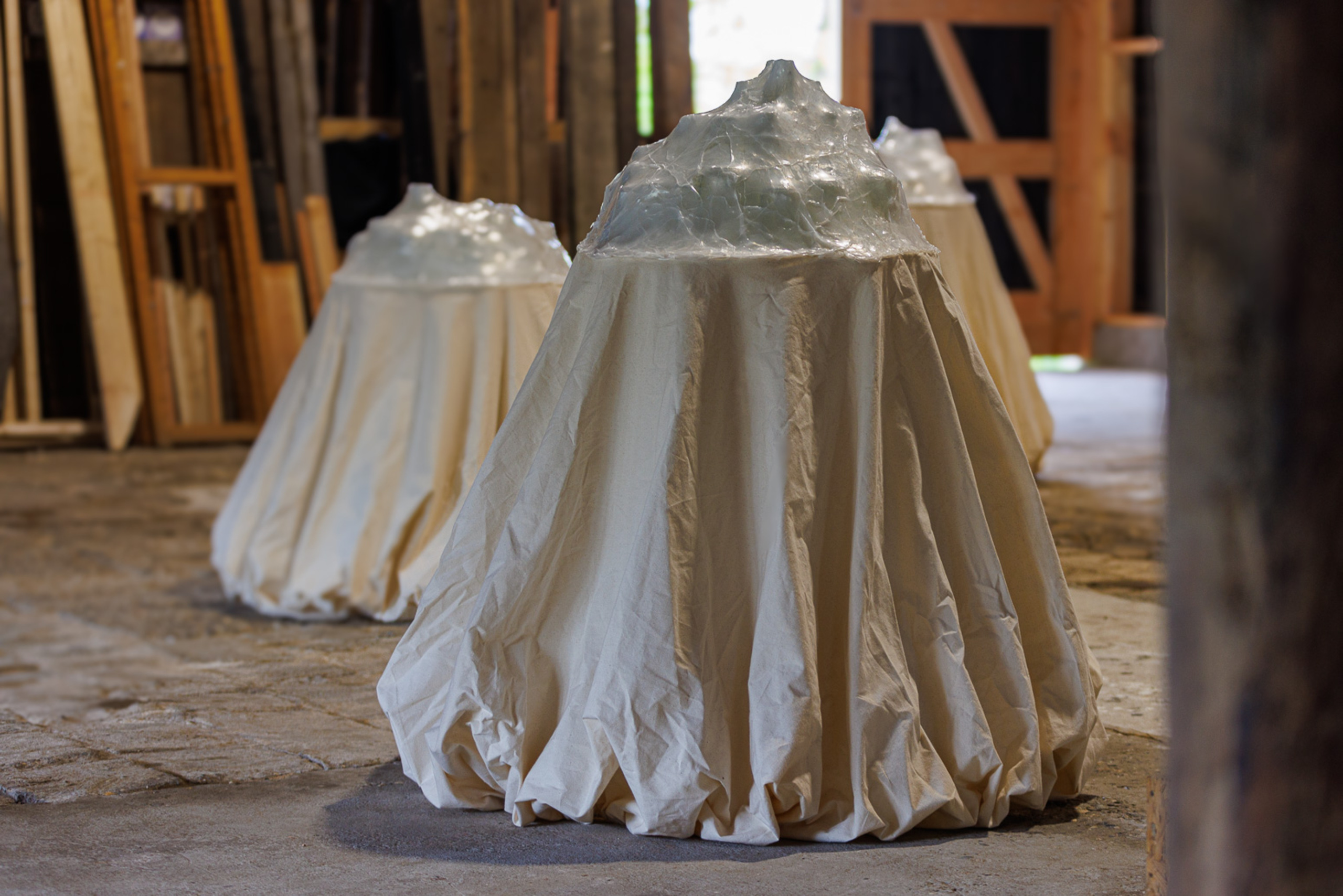 Titel:Mushrooms  Materiaal: krimpfolie en ongebleekt katoen 2024
