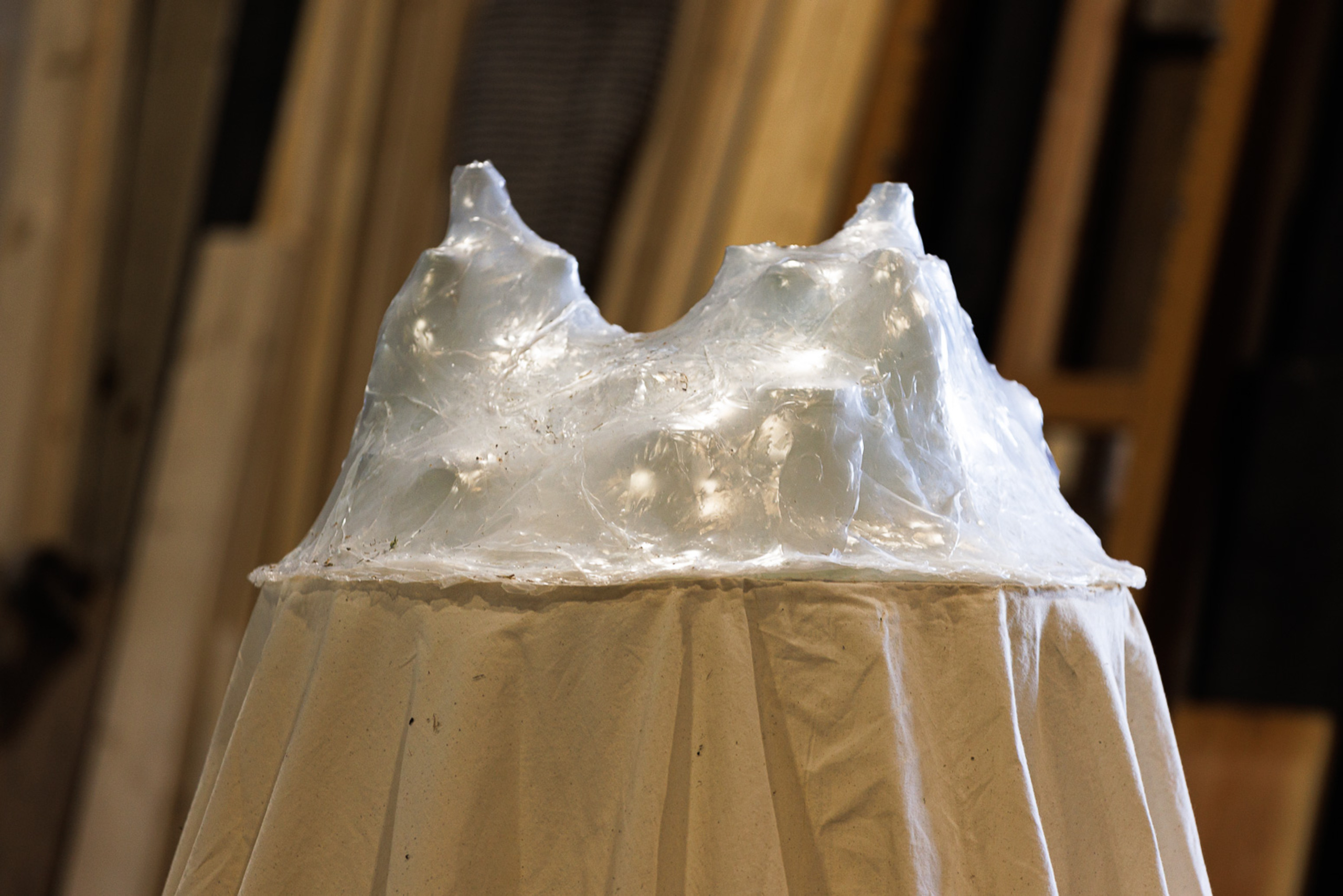 Tittel: Mushrooms materiaal krimpfolie en ongebleekt katoen