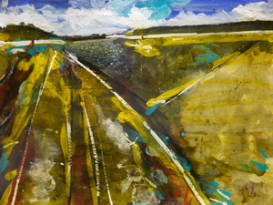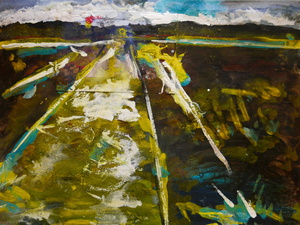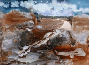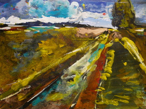 Mookerheide - abstract - weg - een foto als uitgangspunt - pigment op papier - vernis - 30x40 cm 2020