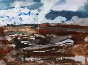 Thema in mijn werk is vaak de horizon. Het landschap dat voor je voeten ligt waar de horizon je uitnodigt om na te denken waar je vandaan komt en waar je heen gaat.