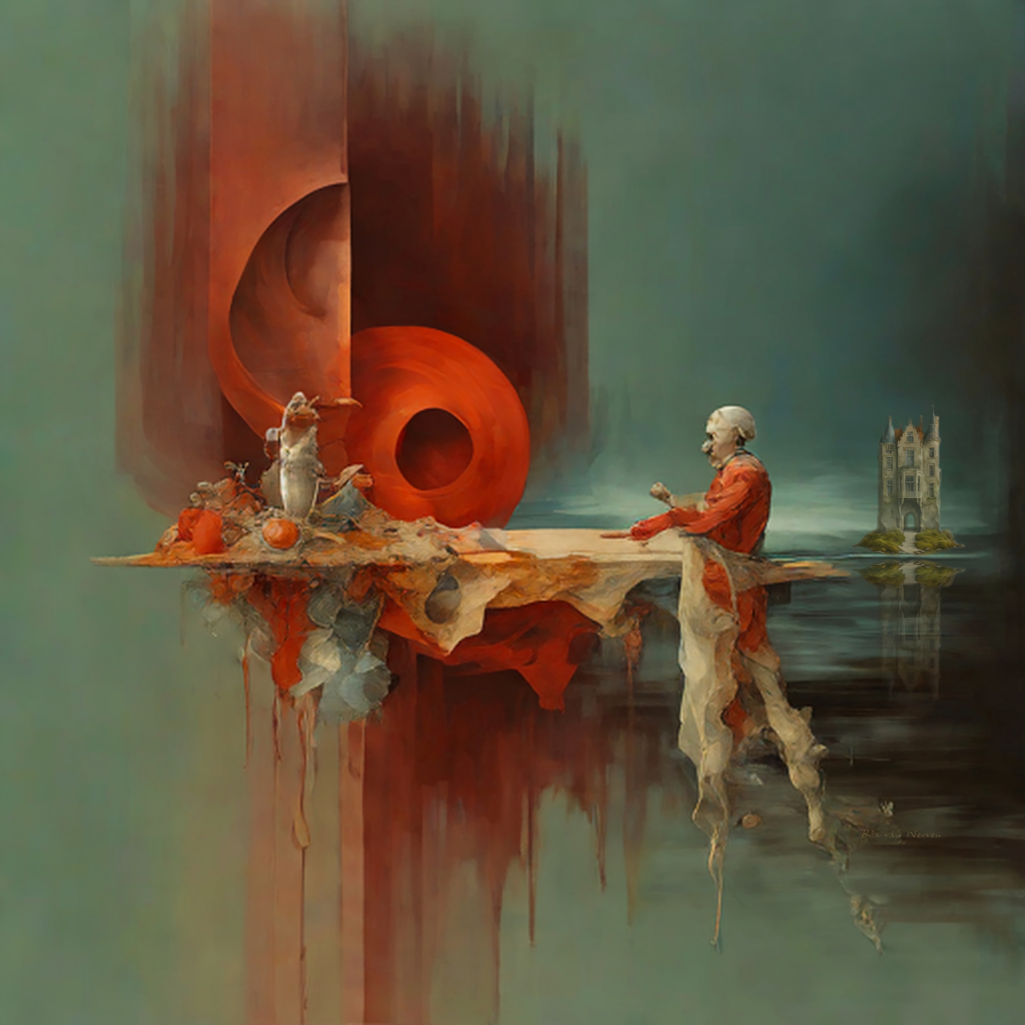 Kasteel Landschap Surrealisme Oranje Rood Wit Groen Bruin