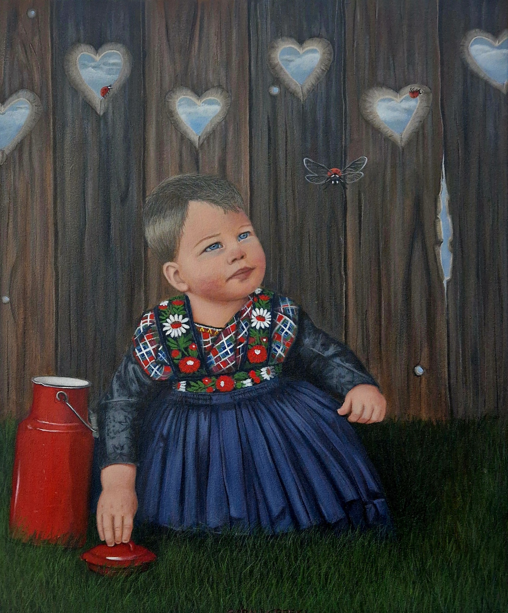 Staphorst Lieveheersbeestje Jongetje Klederdracht Buiten Spelen Acryl