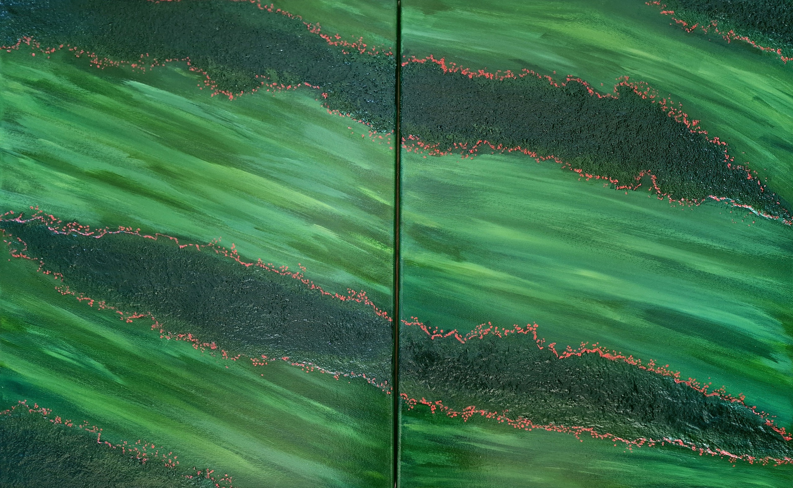 Tweeluik, acryl, veer, structuur, natuur, kleur