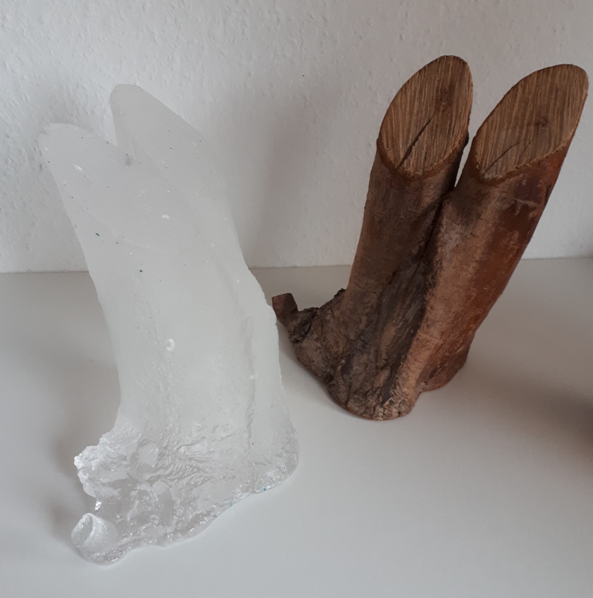 Voorbeeld hout Maasvrouw Torso III met het afgietsel van glas