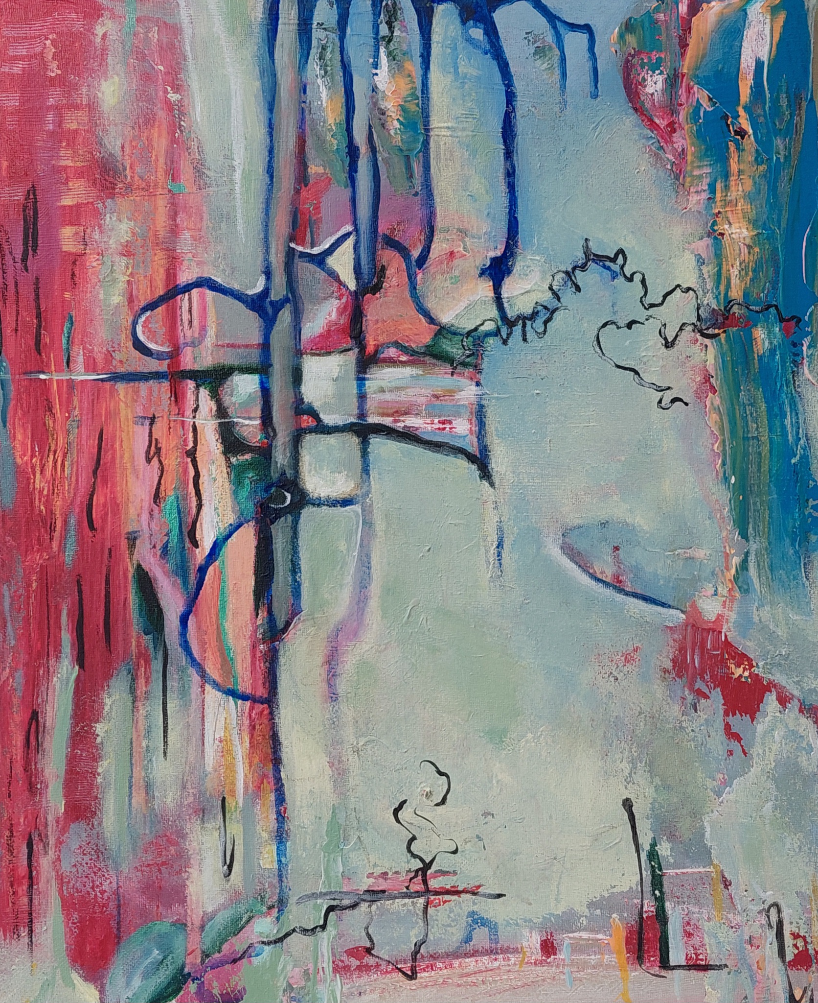 Sinds enkele jaren schilder ik vanuit mijn hart, intuitief ontstaan soms heel bijzondere elementen in mijn werk. Aan mij om dat wat verschijnt de aandacht te geven en het geheel te verbinden.