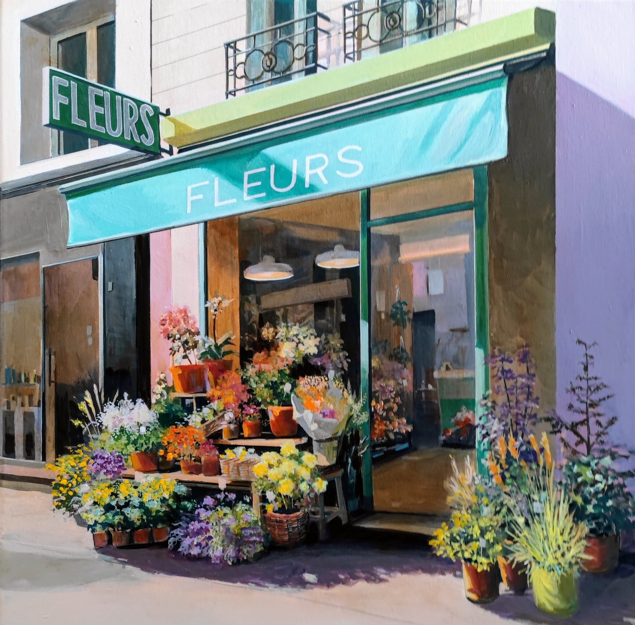 Ik schilder de stad: straten, gevels, etalages, interieurs.