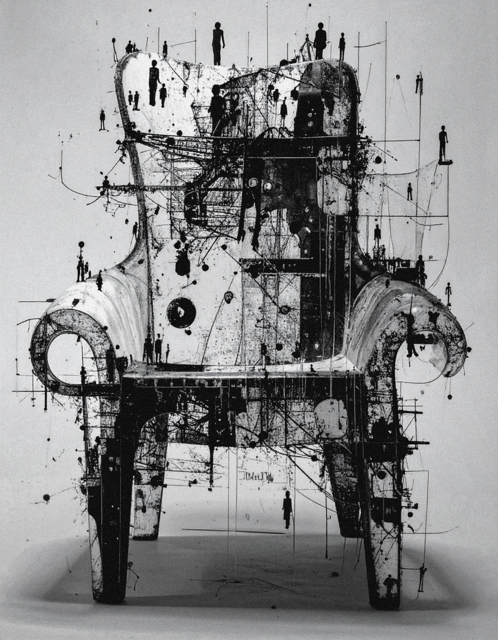 Stoel Wereldstoel Chairs Wereld Verval Mens Grafiek Experimenteel Contemporaryart Kunst Kunstenaars Digitalekunst Ai Digitalart Art