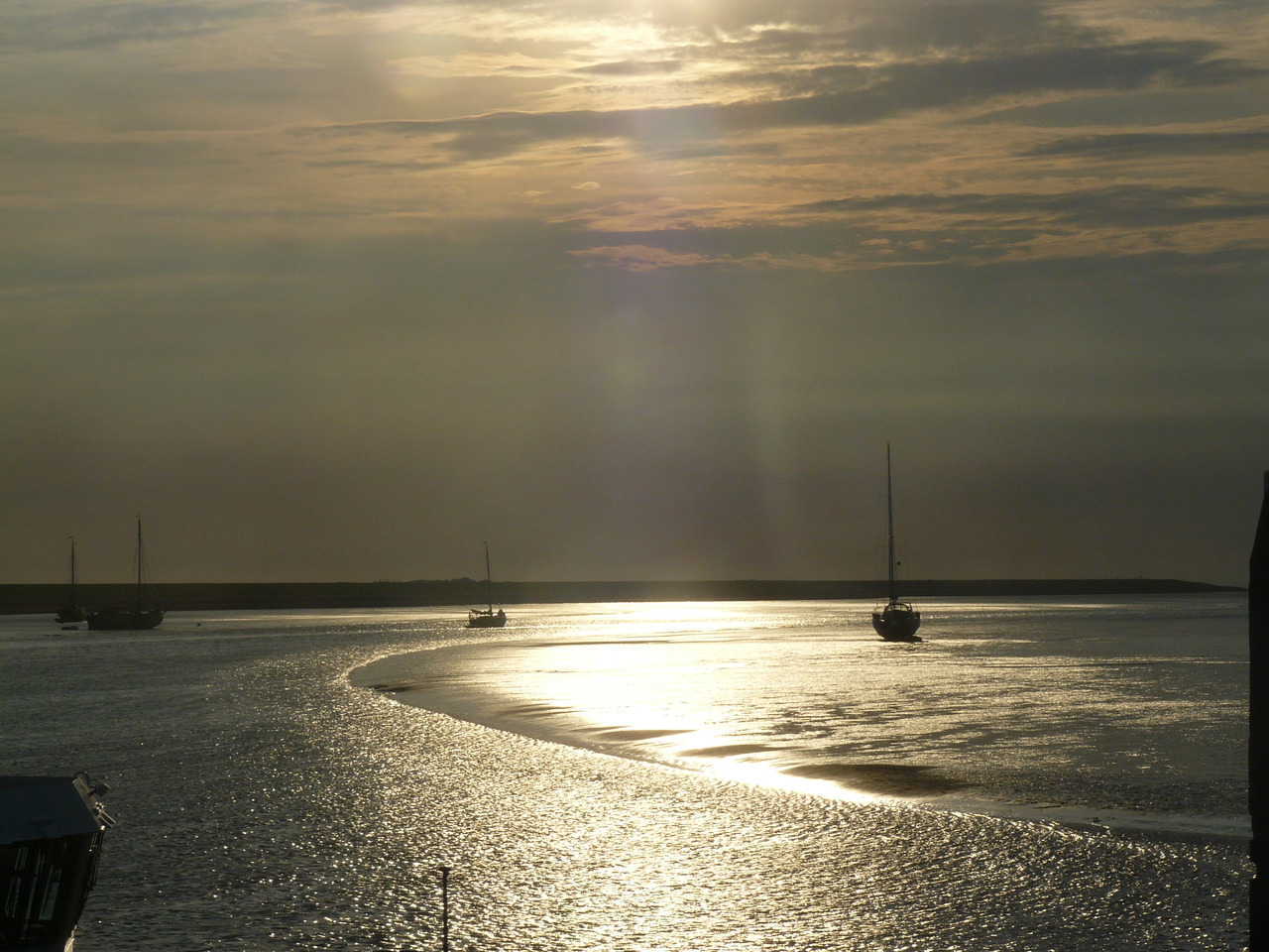 Zee Zon Haven Meer Sea Zeilboten Opkomende Sunrise Sonne Aufgehende Segelboote Hafen