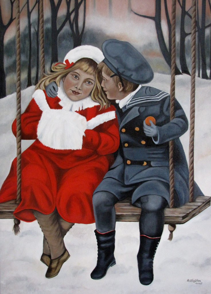 schommelende kinderen olieverf op doek incl. lijst