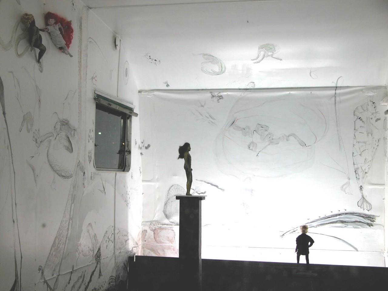 De caravan is aan alle kanten volgetekend met bestaande en niet-bestaande dieren. Aan de wanden en op sokkels bevinden zich barbies die spelen dat zij heel beroemde kunstwerken zijn, van Michelangelo, Caspar David Friedrich, Edgar Degas, Markus Lüpertz. Ze zijn toch herkenbaar als gewone barbies door hun handjes, voetjes en haar