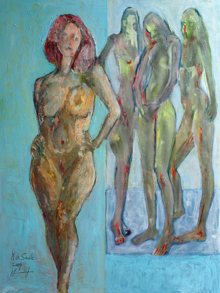 Acryl Blue Canvas In Painting En On Haven Verlegenheid Naakten And Nudes Volendam Confidence Zelfvertrouwen Ladies Shyness Henk Snoek Snelle