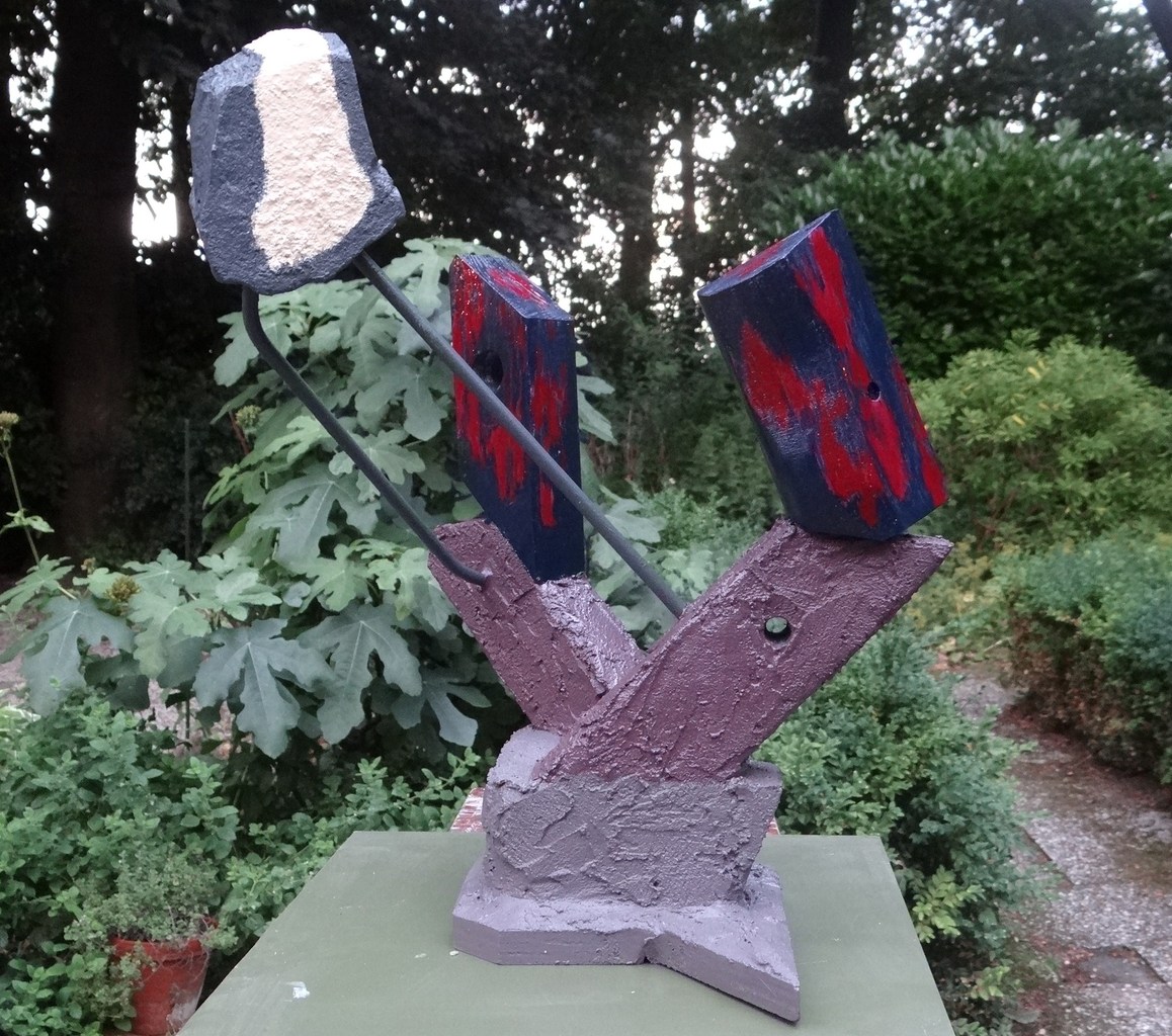 Hout Mixed Media Steen Metaal Assemblage Verf Verheven Meurtant Dada Recycling-art