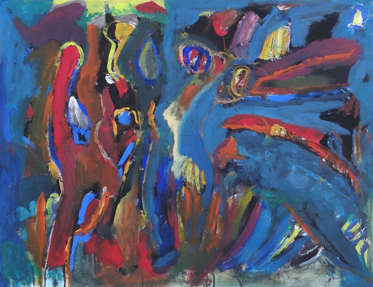 'In duet met mijzelf'. (opgedragen aan Hinne-Richt van der Held) Jeanine Keuchenius, beeldend kunstenaar, danser, performer. Geboren in 1953 in Indonesië. Achtergrond: beeldend therapeut (zelfstandig en binnen psychiatrie) en maatschappelijk, pastoraal werk. Mijn motto is: In duet met mijzelf. Ik ga af op mijn zintuigen en beweeg me naar binnen, terwijl ik mezelf besluip. Ik tuimel in mijn schilderijen, ga het duister in en kom lichtvoetig of stampend te voorschijn.