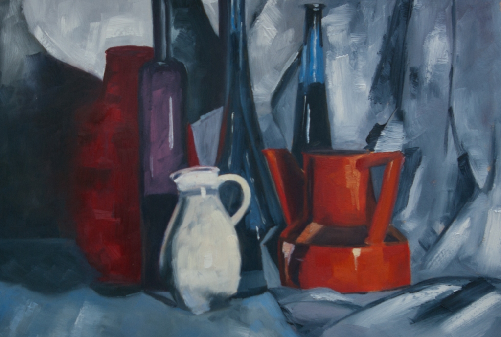 Olieverf Stilleven van kannen en Oliepot