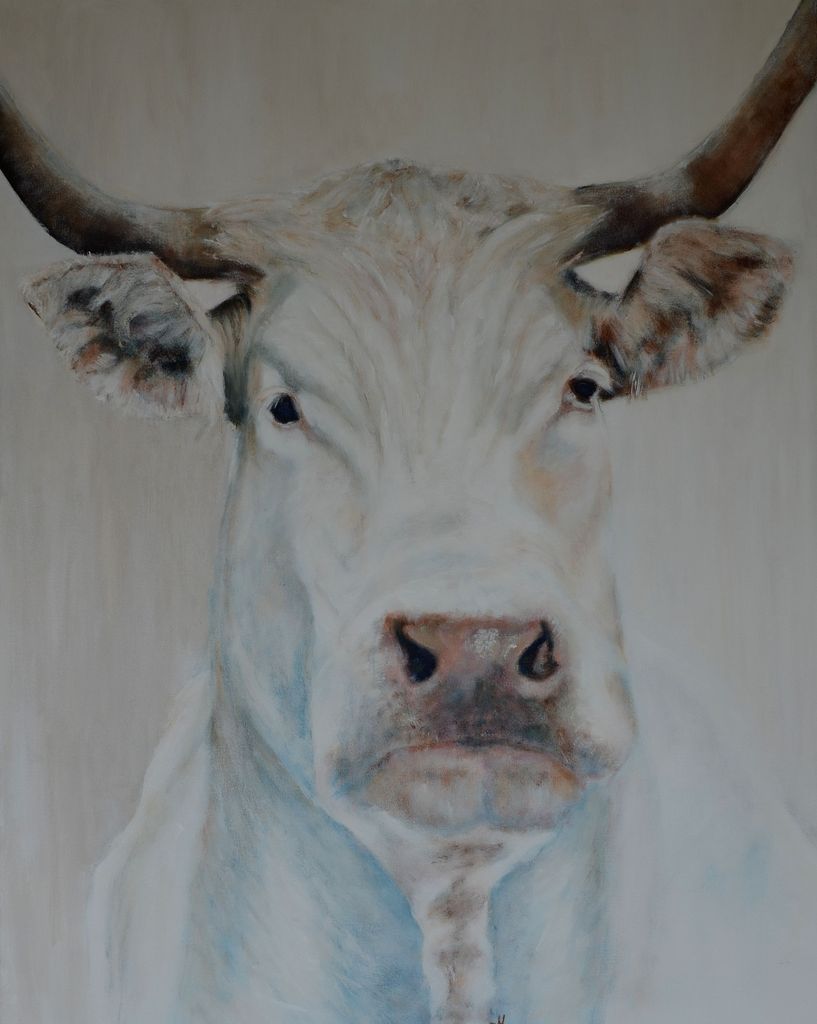 Acryl Portret Koe Realistisch Horens