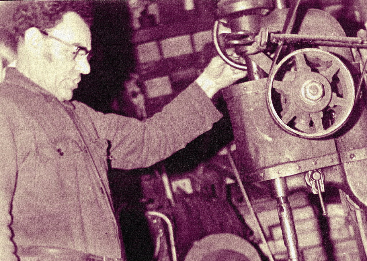 Trotse smid toont de werking van zijn nieuwste machine.